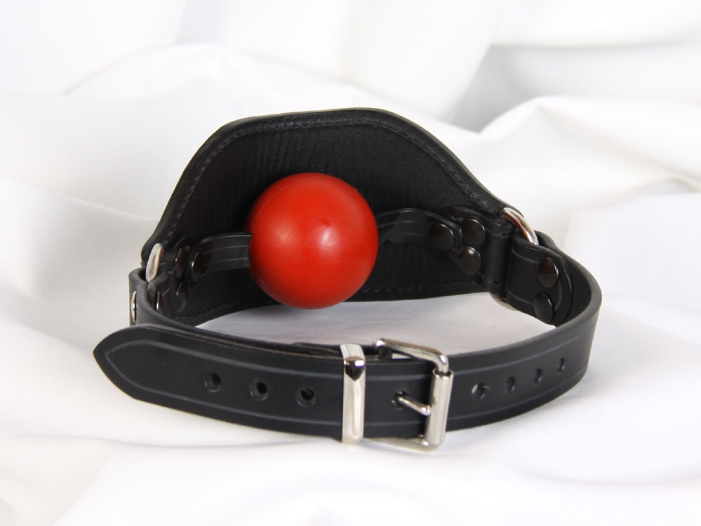 Our fabulous looking gag offers you a great alternative to our traditional ball gag. The ball is attached to a bridle leather harness with a buckle closure which has been shaped to give a terrific visual appearance. The harness is lined with our unique waterproof leather making it easy to keep clean by simply wiping with a damp cloth after use. As with all of our ball gags they are made to our specifications from an FDA approved food grade silicone allowing us to guarantee no bad taste or smell and completely non-toxic. You have a choice of ball size and colour. The leather is finished to our high standards with bevelled, dyed and polished edges.