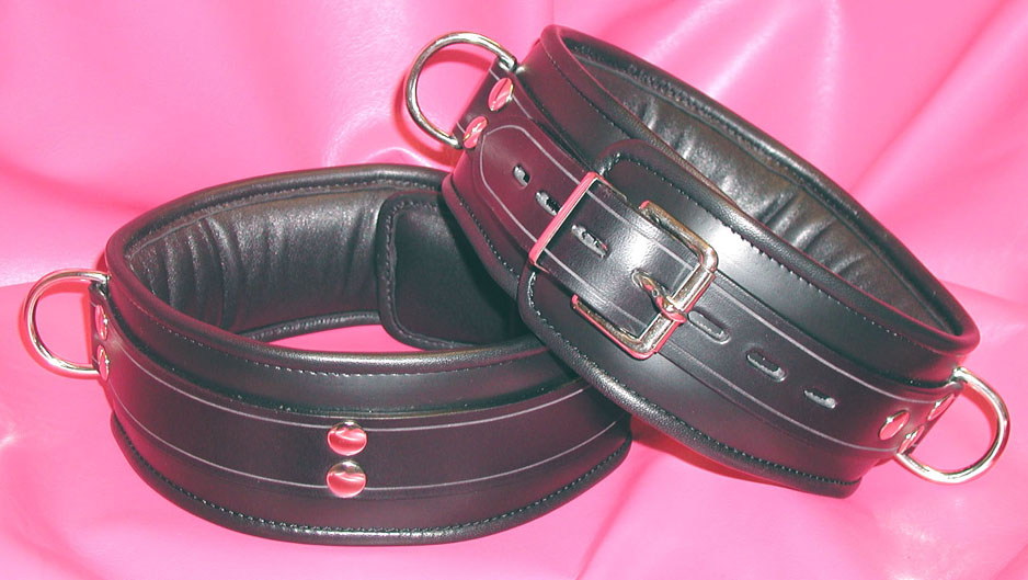 Made to order, these heavyweight leather bondage thigh restraints are made wider than our luxury thigh cuffs with 1.25 inch / 32mm strap, buckle and two extremely strong D-rings. As with the heavyweight restraint set these thigh cuffs are fully padded and bound for comfort with a choice of trim colour allowing you to complete the set and have all of your leather restraints matching. They are 2.75 inch / 70mm deep and the straps are double riveted for strength and durability. They are lined with luxurious lambskin so they feel wonderful to wear for any length of time. Our thigh restraints are made to measure. Please take the measurement at the widest part of the thigh and we will ensure a good fit at that point.