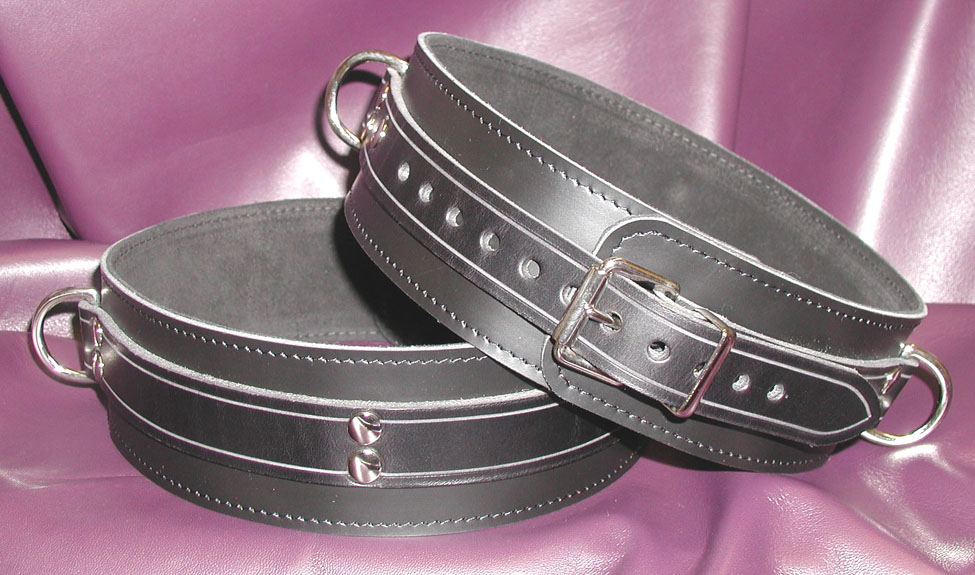 Made to order, our entry level thigh cuffs are beautifully made with a suede lining and have a 1" / 25mm bridle leather strap and 2 solid cast D-rings for attachment.  This particular style of leather thigh cuff is designed and made to match our other leather bondage restraints so you can complete your set.  They are 2 1/4" / 55mm deep and are made to measure from a supplied size, please measure the thigh at the widest part of the wearer and we will ensure a good fit at that point.  They are available with either traditional or lockable buckles, please chose your buckle type from the options below.