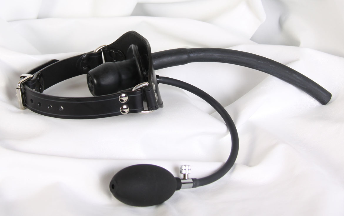 This gag harness has been specifically designed to work with the inflatable airway gag. This style of gag is ideal for play that requires the wearer to use their mouth for breathing, allowing airflow at all times and the advantage of using an inflatable gag is that you can adjust the intensity to your desire. The harness is made from bridle leather with a buckle closure, the mouth cover has been shaped to give a terrific visual appearance. Made using premium leathers with our unique waterproof lining makes this harness very easy to keep clean by simply wiping with a damp cloth after use. The airway tube can be cut to your desired length and the harness is finished to our very high standards with bevelled, dyed and polished edges. Please note that the inflatable airway gag comes in a sealed bag, to use it with the harness remove the pump bulb from the end of the tube, place the gag into the harness and fit the bulb back on.