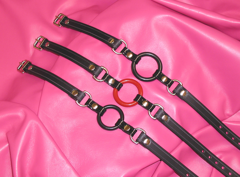 Beautifully finished ring gag, available in 3 sizes and two different colours. The ring is made from extremely durable nylon with a PVC strap either side for hygiene purposes. The ¾" / 19mm strap is made from English bridle leather with bevelled and dyed edges of the highest quality.