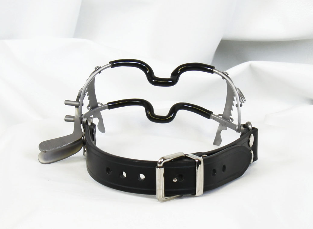 The Whitehead Gag is ideal for keeping the mouth open as wide as you desire. It works on a ratchet system so it is easy to adjust. Our Whitehead Gags are stainless steel and rubber dipped to protect the wearer from chipping their tooth enamel when worn for extended periods and when fully open it gives perfect access to the mouth. Our Whitehead gags come supplied with a 1” / 25mm leather buckled strap which is finished as usual to our exceptionally high standards. This ensures the gag stays in place during play. We also offer a Jennings gag as an alternative to the Whitehead, they are very similar to each other so it is really a matter of personal choice and in our opinion both styles are the best gags available for keeping the mouth wide open.
