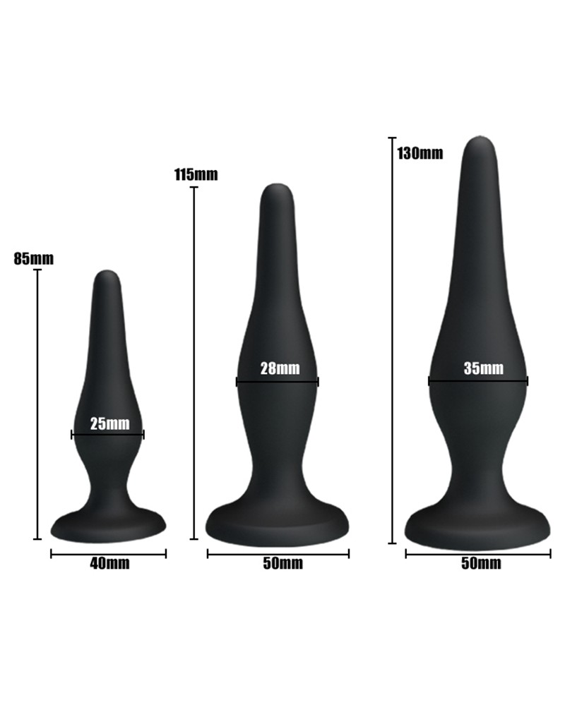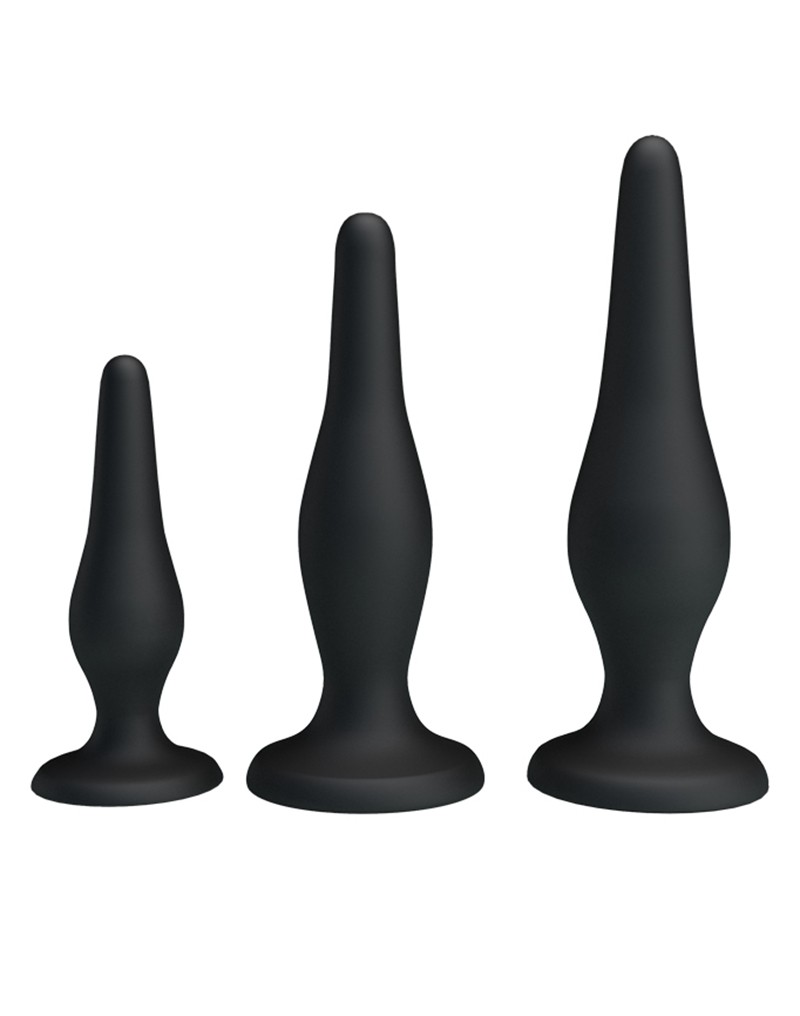 A great butt plug kit containing 3 different sizes, so that each plug gives a different sensation.  Ideal for use with our butt plug harness, or great just on their own.