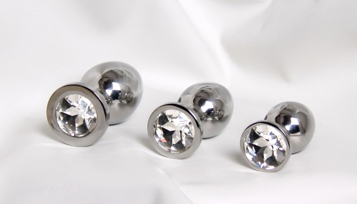 Our stainless steel butt plugs are designed for a good comfortable fit with a beautiful crystal jewel at the end, making the wearer sparkle. Made from premium quality stainless steel with a highly polished finish, this Rosebud style butt plug gives the wearer an intensity that can not be beaten. As they are stainless they weigh more that traditional latex butt plugs ensuring the wearer has a constant sensation and feeling of awareness. Once in place they soon warm to body temperature and because they are solid stainless you definitely know that it has been fitted. They are very easy to keep clean and make a great addition to any anal play toy box. We have various jewel colours to choose from, and it is also available in three sizes, please select your required size and colour below. The use of a quality lubricant is highly recommended, which is available from our accessories page.