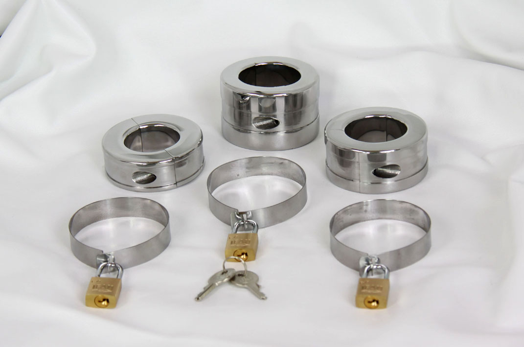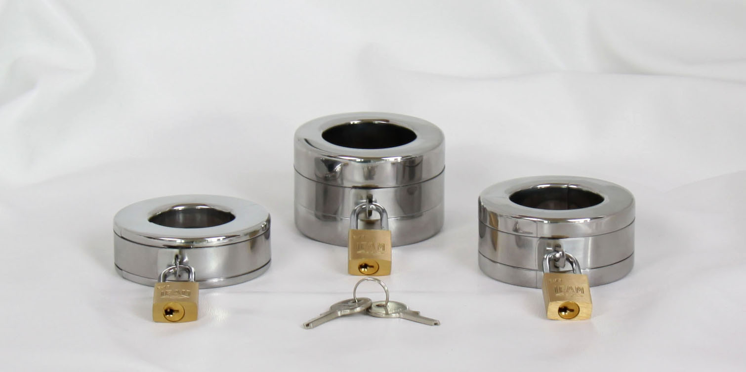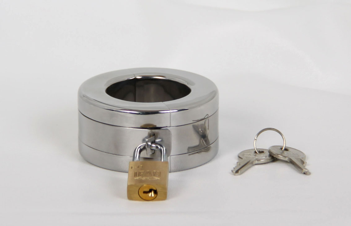 Our stainless steel locking ball stretcher weights are designed to give the male scrotum a definite stretch if worn for a longer period of time, or just give the wearer an incredible short term sensation. They are made from high quality stainless steel, and exclusively from us you will also receive a FREE locking clip and padlock. This particular ball weight is 30mm deep and comes in 3 different internal diameters. You have an internal diameter choice of either 33mm, 36mm or 39mm, please select below. Our ball stretcher weights are worn directly around the testicles and they are positioned by separating the two halves and then closing them by the use of an Allen key. The locking clip is optional as these ball weights work just as well without the locking clip being fitted, but if you use the locking clip they are completely inescapable. Our 30mm deep ball stretchers are individually handmade and weigh approximately 420 grams.