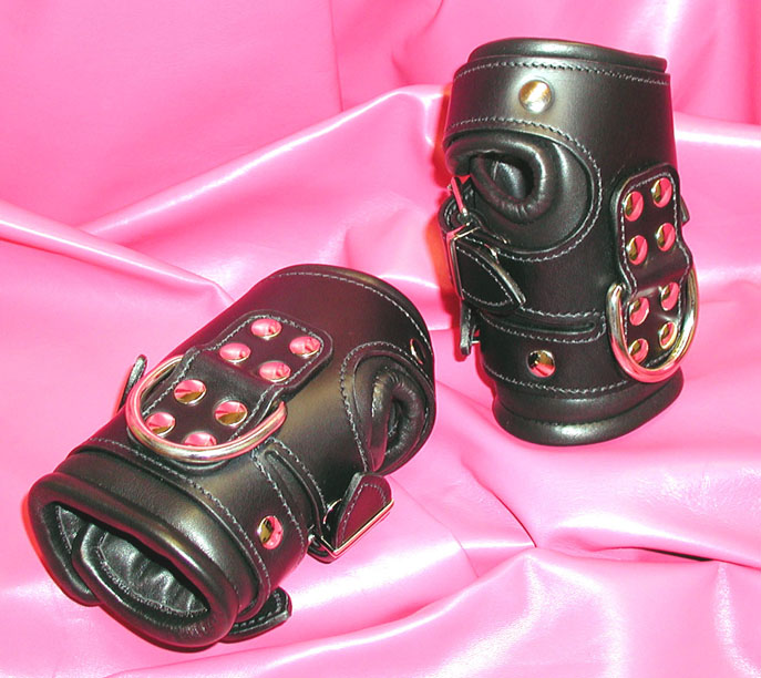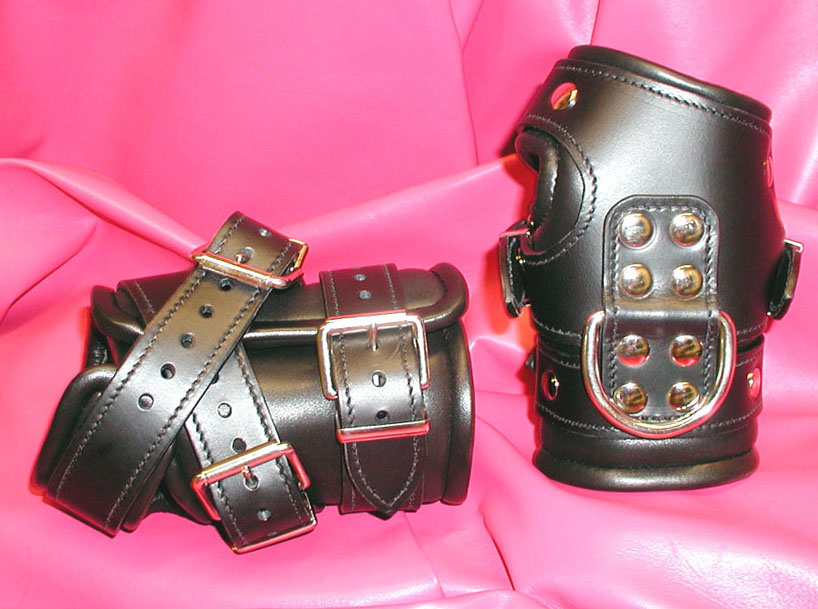 Made to order these heavyweight wrist suspension cuffs are manufactured from our extremely heavy and strong bridle leather, stitched and finished to our usual high standards. These cuffs are heavily riveted for strength and have a thick leather covered pad for comfort. The large 1.75" heavyweight nickel plated D-ring allows for vertical suspension, removing any discomfort that may occur from regular wrist cuffs. Specifically designed suspension cuffs are by far the safest way to have fun with suspension play. They also work extremely well for attaching to a bed etc, using the D-ring on the palm as the attaching point. Available with a choice of edging colours. Please note that this style of suspension cuffs are suitable for a wrist circumference of 7" / 180mm or larger.